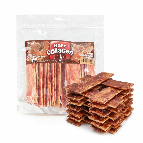 Pasirūpinkite savo augintinio sveikata, patiekdami jam traškų skanėstą, kuriam jis negalės atsispirti! Kolageno traškučiai su elniena yra lengvi, bet maistingi skanėstai, puikiai tinkantys kaip kasdienis atlygis ir teigiamai paveiks jūsų augintinio sąnarių būklę bei kailio išvaizdą.